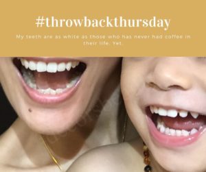 That is myself and my son in the picture! The little one is only two years old so I didn’t let him use my whitening toothpaste but look at my teeth!!! Aren’t they are just as white as my son’s who’s never had coffee in his life just yet? Winning! The best cosmetic ever don’t you think?