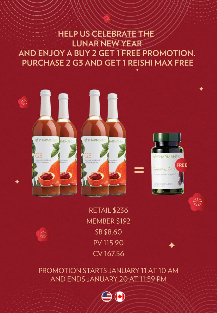 Buy 2 sets of G3 (2 bottles / set) and get a Reishi Max for free!
